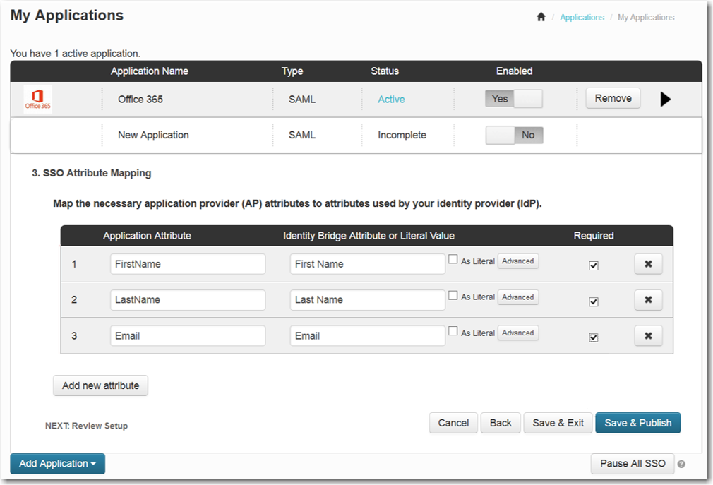 Click Continue to Next Step. The 3. SSO Attribute Mapping view opens.